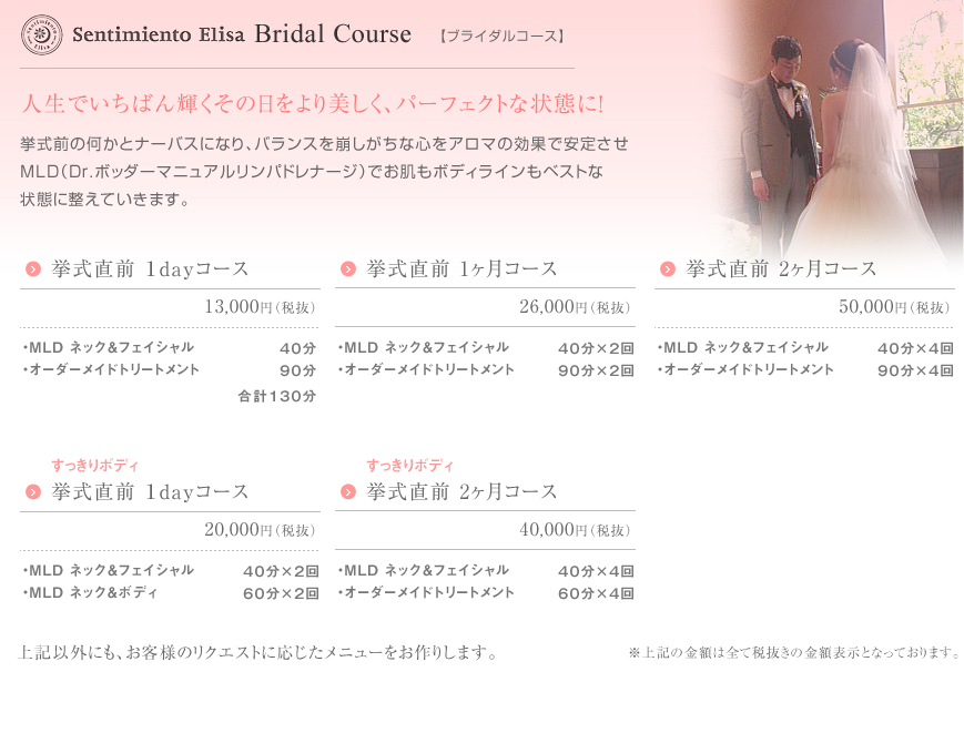 | ※上記の金額は全て税抜きの金額表示となっております。 ※延長10分ごとに1,000円 |